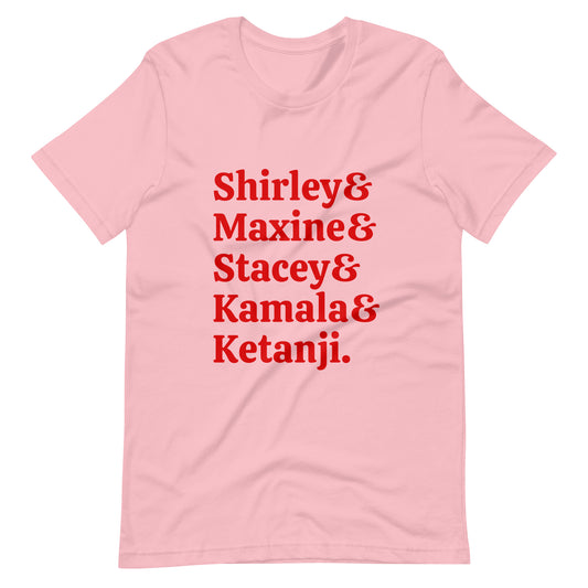 Trailblazers: Honoring Shirley, Maxine, Stacey, Kamala and Ketanji Unisex t-shirt