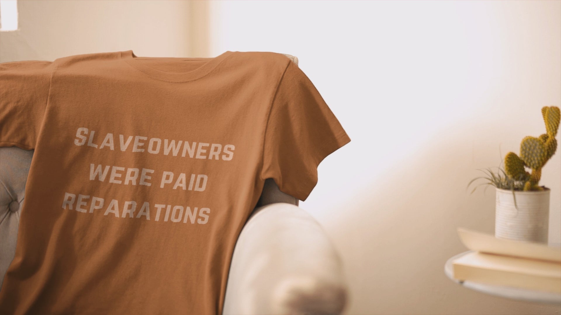 This bold and thought-provoking t-shirt features the statement "slaveowners were paid reparations" in a bold and prominent font. Made from 100% soft and comfortable cotton, this shirt is perfect for making a statement and sparking conversation. Show your support for the reparations for the descendants of enslaved Africans and the importance of acknowledging the role of slavery in shaping our country's history.